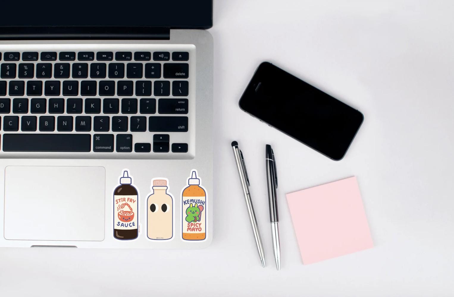 Laptops, water bottles, journals, tablets, sketchbooks, or any smooth surface that needs a dash of cuteness and foodie humor!
